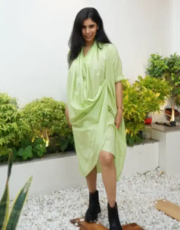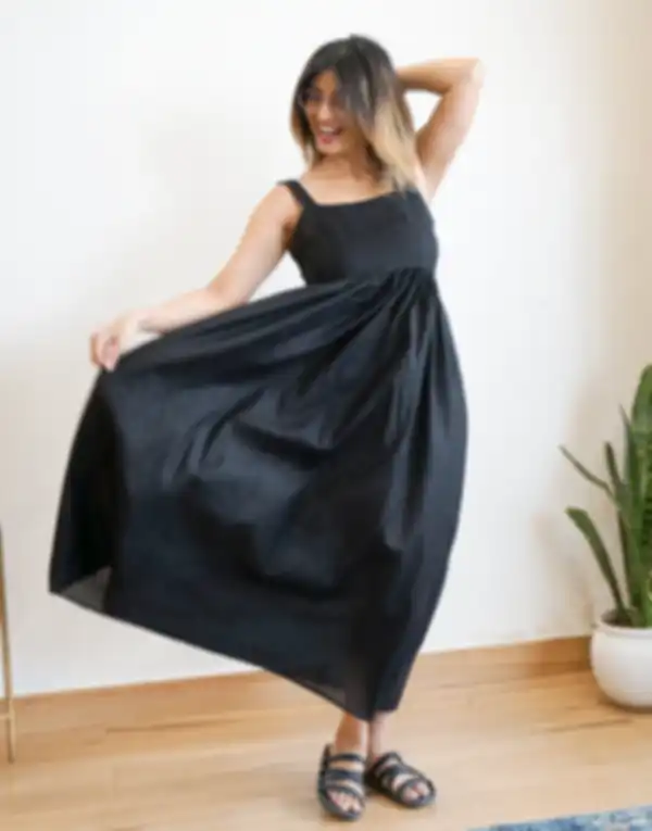 Look for designs with gathers, belts, or seams that create shape where you want it especially at the waist.